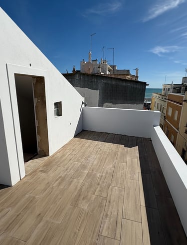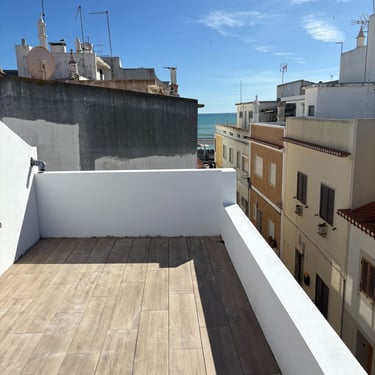 Equipada com um espaço de sala e cozinha open space, 1 casa de banho , 1 sala de arrumações , 1 quarto e um terraço com vista mar